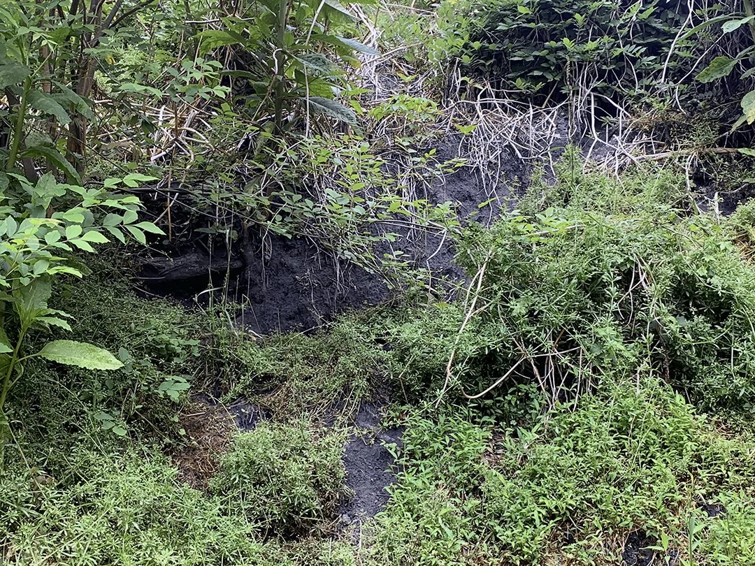 Coal ash on the big slope that faces the creek. That is all coal ash — and all that separates it from the creek are a couple of polyester silt fences.